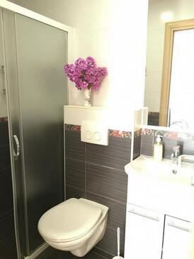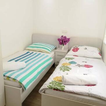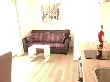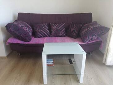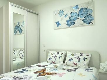Ferienwohnung bietet Platz für 4 Gäste. Die Betten sind in Schlafzimmern, die es 2 gibt, innerhalb einer Gesamtfläche von 42m2, angeordnet. Die Gäste haben eine eigene Terrasse zur Verfügung, auf der sie in warmen Sommernächten genießen können. Das Apartment bietet Meerblick. Es ist erlaubt, Speisen auf dem Gemeinschafts-Grill vorzubereiten.