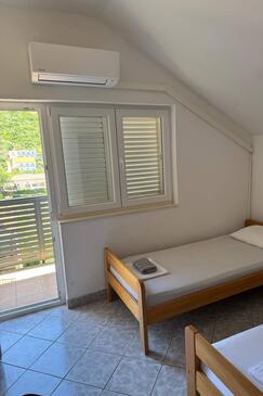 Ferienwohnung bietet Platz für 9 Gäste. Die Betten sind in Schlafzimmern, die es 3 gibt, innerhalb einer Gesamtfläche von 64m2, angeordnet. Die Gäste haben eine eigene Terrasse zur Verfügung, auf der sie in warmen Sommernächten genießen können. Es ist erlaubt, Speisen auf dem Gemeinschafts-Grill vorzubereiten.