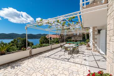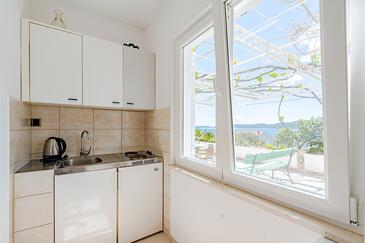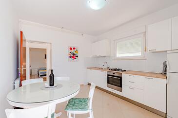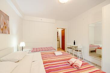Ferienwohnung bietet Platz für 4 Gäste. Die Betten sind in Schlafzimmern, die es 2 gibt, innerhalb einer Gesamtfläche von 47m2, angeordnet. Die Gäste haben eine eigene Terrasse zur Verfügung, auf der sie in warmen Sommernächten genießen können. Das Apartment bietet Meerblick. Es ist erlaubt, Speisen auf dem Gemeinschafts-Grill vorzubereiten.