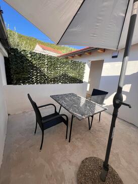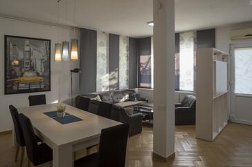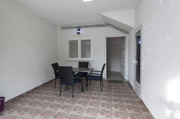 Ferienwohnung bietet Platz für 6 Gäste. Die Betten sind in Schlafzimmern, die es 2 gibt, und in Wohnzimmer, innerhalb einer Gesamtfläche von 70m2, angeordnet. Die Gäste haben eine eigene Terrasse zur Verfügung, auf der sie in warmen Sommernächten genießen können. Es ist erlaubt, Speisen auf dem Gemeinschafts-Grill vorzubereiten.