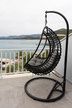 Ferienwohnung bietet Platz für 3 Gäste. Die Betten sind in Schlafzimmern, die es 1 gibt, innerhalb einer Gesamtfläche von 24m2, angeordnet. Die Gäste haben eine eigene Terrasse zur Verfügung, auf der sie in warmen Sommernächten genießen können. Das Apartment bietet Meerblick. Es ist erlaubt, Speisen auf dem Gemeinschafts-Grill vorzubereiten.