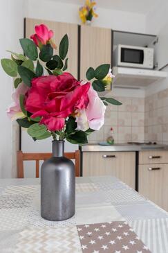 Ferienwohnung bietet Platz für 3 Gäste. Die Betten sind in Schlafzimmern, die es 1 gibt, innerhalb einer Gesamtfläche von 24m2, angeordnet. Die Gäste haben eine eigene Terrasse zur Verfügung, auf der sie in warmen Sommernächten genießen können. Das Apartment bietet Meerblick. Es ist erlaubt, Speisen auf dem Gemeinschafts-Grill vorzubereiten.