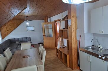 Ferienwohnung bietet Platz für 6 Gäste. Die Betten sind in Schlafzimmern, die es 2 gibt, und in Wohnzimmer, innerhalb einer Gesamtfläche von 52m2, angeordnet. Die Gäste haben einen eigenen Balkon zur Verfügung, auf der sie in warmen Sommernächten genießen können. Es ist erlaubt, Speisen auf dem Gemeinschafts-Grill vorzubereiten.