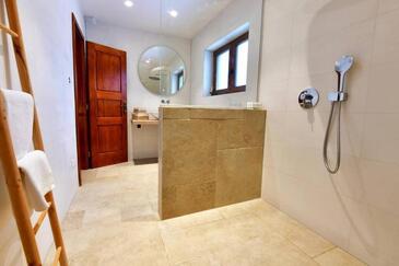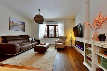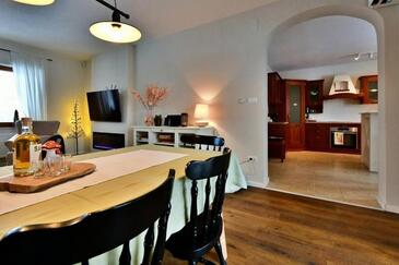 Haus bietet Platz für 8 Gäste. Die Betten sind in Schlafzimmern, die es 3 gibt, innerhalb einer Gesamtfläche von 150m2, angeordnet. Die Gäste haben eine eigene Terrasse zur Verfügung, auf der sie in warmen Sommernächten genießen können. Für vollen Genuss und Entspannung gibt es einen privaten Grill für Gäste dieser Unterkunft.