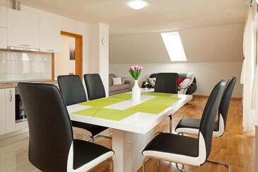 Ferienwohnung bietet Platz für 6 Gäste. Die Betten sind in Schlafzimmern, die es 2 gibt, und in Wohnzimmer, innerhalb einer Gesamtfläche von 63m2, angeordnet. Die Gäste haben einen eigenen Balkon zur Verfügung, auf der sie in warmen Sommernächten genießen können. Es ist erlaubt, Speisen auf dem Gemeinschafts-Grill vorzubereiten.