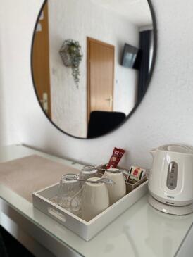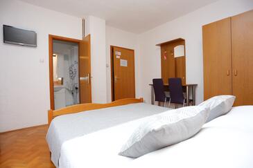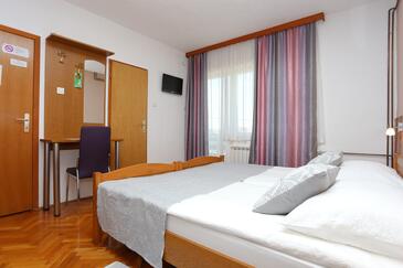 Zimmer bietet Platz für 2 Gäste. Die Betten sind in Schlafzimmern, die es 1 gibt, innerhalb einer Gesamtfläche von 19m2, angeordnet. Die Gäste haben einen eigenen Balkon zur Verfügung, auf der sie in warmen Sommernächten genießen können. In der Unterkunftseinheit besteht die Möglichkeit des Mitbringens von Haustieren gegen Aufpreis. Die reservierte Unterkunftseinheit ist ein Zimmer mit eigenem Badezimmer ohne die Möglichkeit der Nutzung einer Küche.