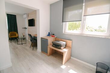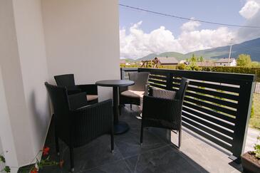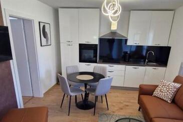 Ferienwohnung bietet Platz für 4 Gäste. Die Betten sind in Schlafzimmern, die es 2 gibt, innerhalb einer Gesamtfläche von 61m2, angeordnet. Die Gäste haben eine eigene Terrasse zur Verfügung, auf der sie in warmen Sommernächten genießen können.