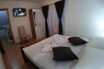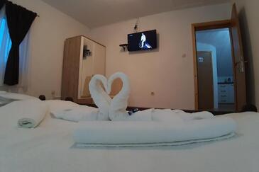 Ferienwohnung bietet Platz für 5 Gäste. Die Betten sind in Schlafzimmern, die es 2 gibt, innerhalb einer Gesamtfläche von 62m2, angeordnet. Die Gäste haben eine eigene Terrasse zur Verfügung, auf der sie in warmen Sommernächten genießen können. Es ist erlaubt, Speisen auf dem Gemeinschafts-Grill vorzubereiten. In der Unterkunftseinheit besteht die Möglichkeit des Mitbringens von Haustieren gegen Aufpreis.