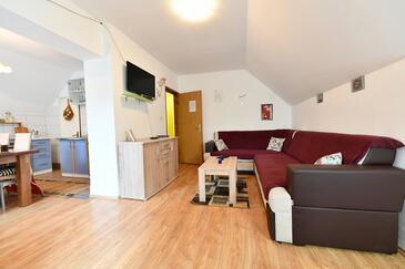 Ferienwohnung bietet Platz für 5 Gäste. Die Betten sind in Schlafzimmern, die es 2 gibt, innerhalb einer Gesamtfläche von 54m2, angeordnet. Die Gäste haben eine eigene Terrasse zur Verfügung, auf der sie in warmen Sommernächten genießen können. Es ist erlaubt, Speisen auf dem Gemeinschafts-Grill vorzubereiten. In der Unterkunftseinheit besteht die Möglichkeit des Mitbringens von Haustieren, und die Dienstleistung ist im Preis der Unterkunft enthalten.