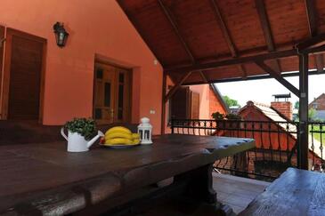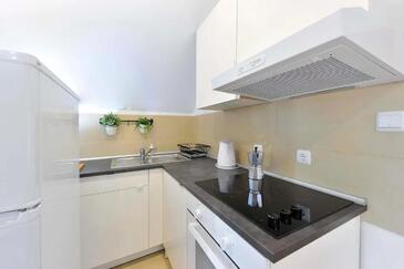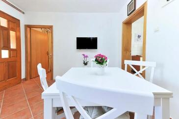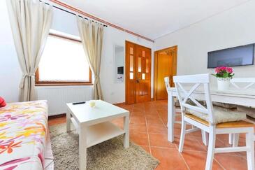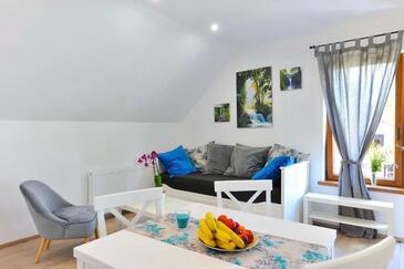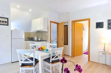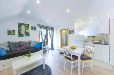 Ferienwohnung bietet Platz für 5 Gäste. Die Betten sind in Schlafzimmern, die es 2 gibt, und in Wohnzimmer, innerhalb einer Gesamtfläche von 49m2, angeordnet. Die Gäste haben eine eigene Terrasse zur Verfügung, auf der sie in warmen Sommernächten genießen können. Es ist erlaubt, Speisen auf dem Gemeinschafts-Grill vorzubereiten. In der Unterkunftseinheit besteht die Möglichkeit des Mitbringens von Haustieren gegen Aufpreis.