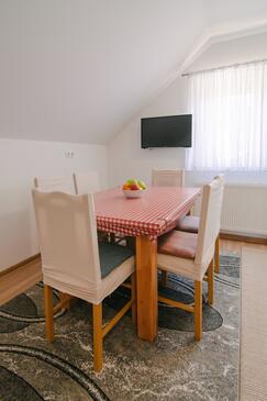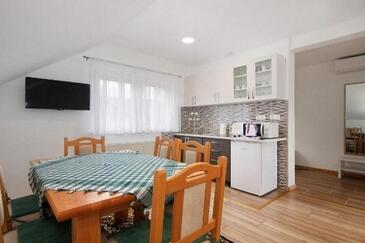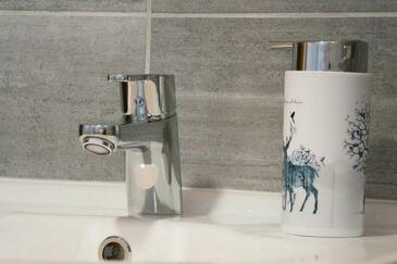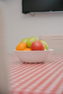 Ferienwohnung bietet Platz für 5 Gäste. Die Betten sind in Schlafzimmern, die es 2 gibt, und in Wohnzimmer, innerhalb einer Gesamtfläche von 57m2, angeordnet. Die Gäste haben eine eigene Terrasse zur Verfügung, auf der sie in warmen Sommernächten genießen können.