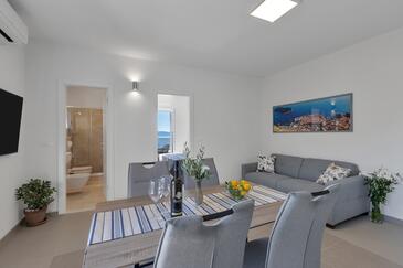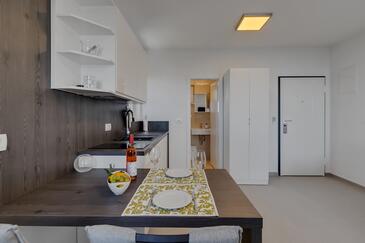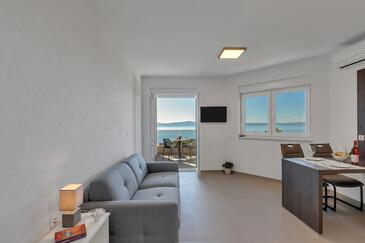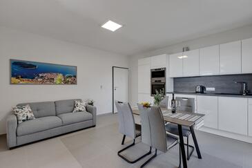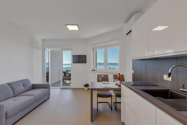Ferienwohnung bietet Platz für 4 Gäste. Die Betten sind in Schlafzimmern, die es 1 gibt, und in Wohnzimmer, innerhalb einer Gesamtfläche von 36m2, angeordnet. Die Gäste können den Meerblick von eigener Terrasse genießen. Es ist erlaubt, Speisen auf dem Gemeinschafts-Grill vorzubereiten. In der gebuchten Unterkunftseinheit zahlt man am Ort ein Depositum ( der Preis ist an der Internetseite angeführt ).