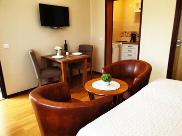 Ferienwohnung bietet Platz für 2 Gäste. Die Betten sind in Schlafzimmern, die es 1 gibt, innerhalb einer Gesamtfläche von 36m2, angeordnet. Die Gäste haben einen eigenen Balkon zur Verfügung, auf der sie in warmen Sommernächten genießen können.
