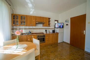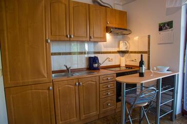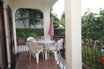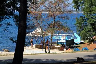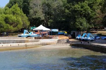 Ferienwohnung bietet Platz für 4 Gäste. Die Betten sind in Schlafzimmern, die es 2 gibt, innerhalb einer Gesamtfläche von 46m2, angeordnet. Die Gäste haben eine eigene Terrasse zur Verfügung, auf der sie in warmen Sommernächten genießen können. Es ist erlaubt, Speisen auf dem Gemeinschafts-Grill vorzubereiten.