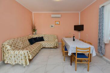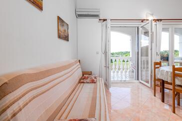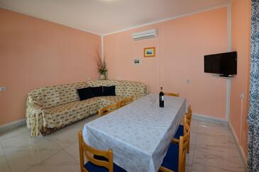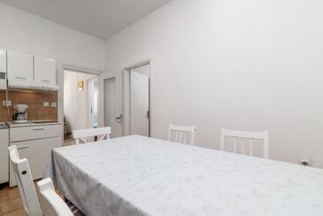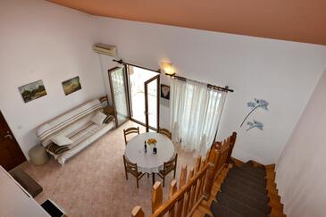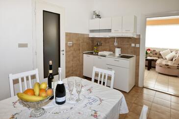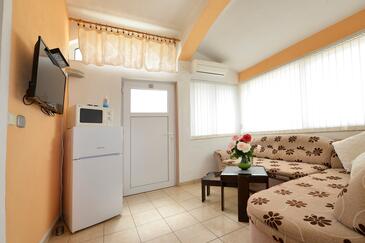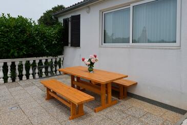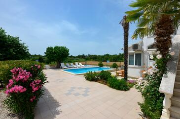 Ferienwohnung bietet Platz für 9 Gäste. Die Betten sind in Schlafzimmern, die es 2 gibt, und in Wohnzimmer, innerhalb einer Gesamtfläche von 71m2, angeordnet. Die Gäste haben eine eigene Terrasse zur Verfügung, auf der sie in warmen Sommernächten genießen können. Es ist erlaubt, Speisen auf dem Gemeinschafts-Grill vorzubereiten. Während ihres Aufenthalts können Gäste das gemeinsam zur Nutzung stehende Schwimmbad benutzen. In der Unterkunftseinheit besteht die Möglichkeit des Mitbringens von Haustieren gegen Aufpreis. In der gebuchten Unterkunftseinheit zahlt man am Ort ein Depositum ( der Preis ist an der Internetseite angeführt ).