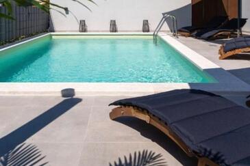 Haus bietet Platz für 6 Gäste. Die Betten sind in Schlafzimmern, die es 3 gibt, innerhalb einer Gesamtfläche von 123m2, angeordnet. Die Gäste haben eine eigene Terrasse zur Verfügung, auf der sie in warmen Sommernächten genießen können. Für vollen Genuss und Entspannung gibt es einen privaten Grill für Gäste dieser Unterkunft. Während ihres Aufenthalts können sich Gäste im privaten Schwimmbad entspannen.