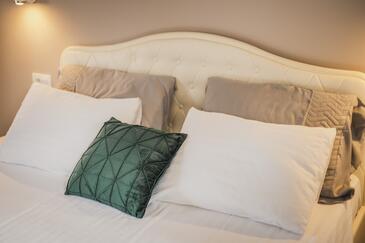 Zimmer bietet Platz für 2 Gäste. Die Betten sind in Schlafzimmern, die es 1 gibt, innerhalb einer Gesamtfläche von 24m2, angeordnet. Die Gäste haben einen eigenen Balkon zur Verfügung, auf der sie in warmen Sommernächten genießen können. In der Unterkunftseinheit besteht die Möglichkeit des Mitbringens von Haustieren gegen Aufpreis. Die reservierte Unterkunftseinheit ist ein Zimmer mit eigenem Badezimmer ohne die Möglichkeit der Nutzung einer Küche.