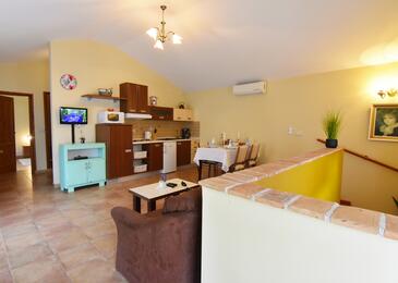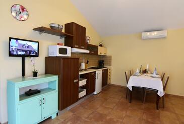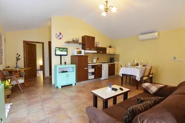 Ferienwohnung bietet Platz für 4 Gäste. Die Betten sind in Schlafzimmern, die es 1 gibt, und in Wohnzimmer, innerhalb einer Gesamtfläche von 53m2, angeordnet. Die Gäste haben eine eigene Terrasse zur Verfügung, auf der sie in warmen Sommernächten genießen können. Es ist erlaubt, Speisen auf dem Gemeinschafts-Grill vorzubereiten. Während ihres Aufenthalts können Gäste das gemeinsam zur Nutzung stehende Schwimmbad benutzen.