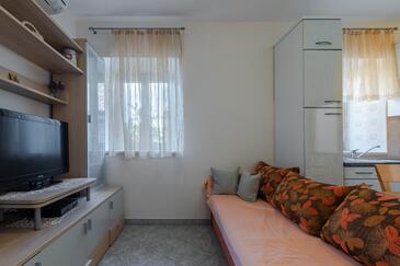 Ferienwohnung bietet Platz für 4 Gäste. Die Betten sind in Schlafzimmern, die es 2 gibt, innerhalb einer Gesamtfläche von 46m2, angeordnet. Die Gäste haben eine eigene Terrasse zur Verfügung, auf der sie in warmen Sommernächten genießen können. Es ist erlaubt, Speisen auf dem Gemeinschafts-Grill vorzubereiten.