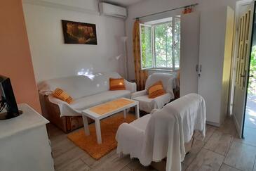 Ferienwohnung bietet Platz für 4 Gäste. Die Betten sind in Schlafzimmern, die es 2 gibt, innerhalb einer Gesamtfläche von 55m2, angeordnet. Die Gäste haben eine eigene Terrasse zur Verfügung, auf der sie in warmen Sommernächten genießen können. Das Apartment bietet Meerblick. Es ist erlaubt, Speisen auf dem Gemeinschafts-Grill vorzubereiten. In der Unterkunftseinheit besteht die Möglichkeit des Mitbringens von Haustieren gegen Aufpreis.