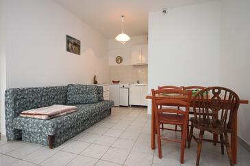 Ferienwohnung bietet Platz für 5 Gäste. Die Betten sind in Schlafzimmern, die es 2 gibt, und in Esszimmer, innerhalb einer Gesamtfläche von 47m2, angeordnet. Die Gäste haben einen eigenen Balkon zur Verfügung, auf der sie in warmen Sommernächten genießen können. Das Apartment bietet Meerblick. Es ist erlaubt, Speisen auf dem Gemeinschafts-Grill vorzubereiten.