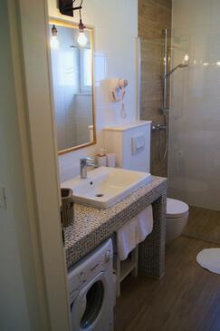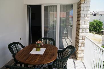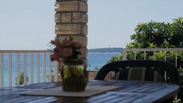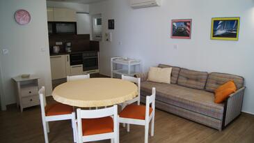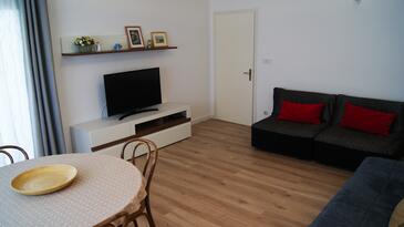 Ferienwohnung bietet Platz für 4 Gäste. Die Betten sind in Schlafzimmern, die es 2 gibt, innerhalb einer Gesamtfläche von 67m2, angeordnet. Die Gäste haben eine eigene Terrasse zur Verfügung, auf der sie in warmen Sommernächten genießen können. Das Apartment bietet Meerblick. Es ist erlaubt, Speisen auf dem Gemeinschafts-Grill vorzubereiten.