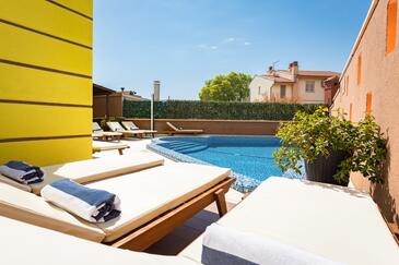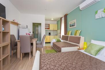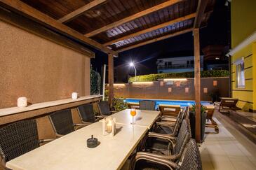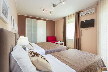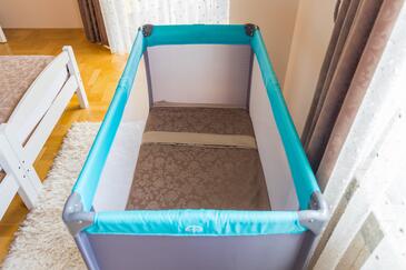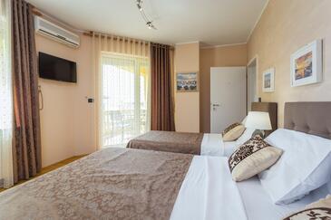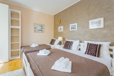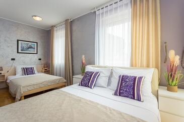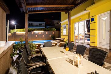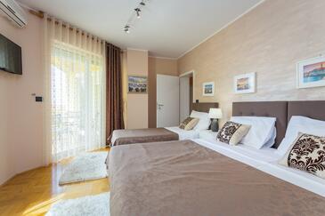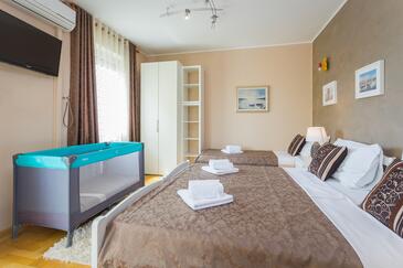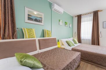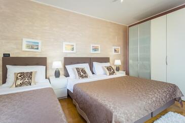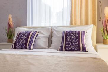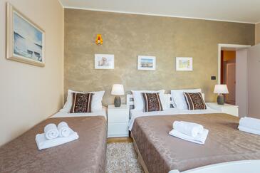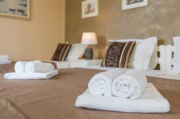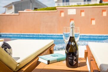 Ferienwohnung bietet Platz für 12 Gäste. Die Betten sind in Schlafzimmern, die es 4 gibt, innerhalb einer Gesamtfläche von 147m2, angeordnet. Die Gäste haben einen eigenen Balkon zur Verfügung, auf der sie in warmen Sommernächten genießen können. Das Apartment bietet Meerblick. Es ist erlaubt, Speisen auf dem Gemeinschafts-Grill vorzubereiten. Während ihres Aufenthalts können Gäste das gemeinsam zur Nutzung stehende Schwimmbad benutzen. In der gebuchten Unterkunftseinheit zahlt man am Ort ein Depositum ( der Preis ist an der Internetseite angeführt ).