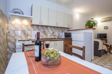 Ferienwohnung bietet Platz für 4 Gäste. Die Betten sind in Schlafzimmern, die es 3 gibt, innerhalb einer Gesamtfläche von 61m2, angeordnet. Die Gäste haben eine eigene Terrasse zur Verfügung, auf der sie in warmen Sommernächten genießen können. Es ist erlaubt, Speisen auf dem Gemeinschafts-Grill vorzubereiten.