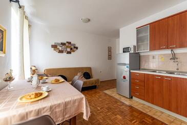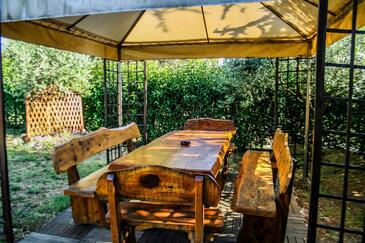 Ferienwohnung bietet Platz für 12 Gäste. Die Betten sind in Schlafzimmern, die es 4 gibt, und in Wohnzimmer und Esszimmer, innerhalb einer Gesamtfläche von 145m2, angeordnet. Die Gäste haben einen eigenen Balkon zur Verfügung, auf der sie in warmen Sommernächten genießen können. Für vollen Genuss und Entspannung gibt es einen privaten Grill für Gäste dieser Unterkunft. Während ihres Aufenthalts können sich Gäste im privaten Schwimmbad entspannen. Räume der gebuchten Unterkunftseinheit werden nicht in eine Ganze verbunden.