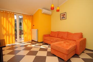 Ferienwohnung bietet Platz für 4 Gäste. Die Betten sind in Schlafzimmern, die es 2 gibt, innerhalb einer Gesamtfläche von 54m2, angeordnet. Die Gäste haben eine eigene Terrasse zur Verfügung, auf der sie in warmen Sommernächten genießen können.