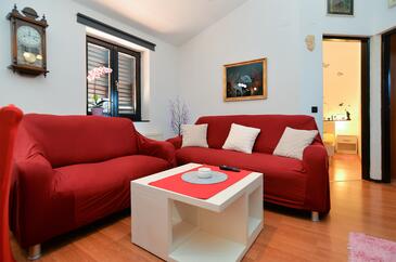 Ferienwohnung bietet Platz für 6 Gäste. Die Betten sind in Schlafzimmern, die es 3 gibt, innerhalb einer Gesamtfläche von 57m2, angeordnet. Die Gäste haben eine eigene Terrasse zur Verfügung, auf der sie in warmen Sommernächten genießen können. Es ist erlaubt, Speisen auf dem Gemeinschafts-Grill vorzubereiten.