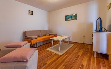 Ferienwohnung bietet Platz für 6 Gäste. Die Betten sind in Schlafzimmern, die es 2 gibt, und in Wohnzimmer, innerhalb einer Gesamtfläche von 80m2, angeordnet. Die Gäste haben einen eigenen Balkon zur Verfügung, auf der sie in warmen Sommernächten genießen können. Es ist erlaubt, Speisen auf dem Gemeinschafts-Grill vorzubereiten.
