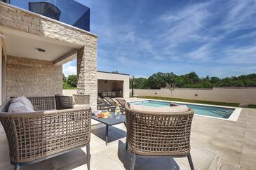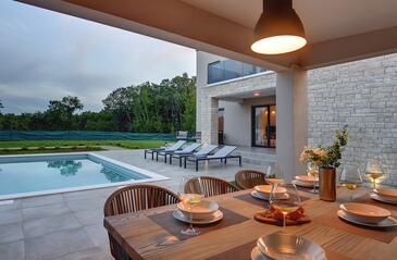 Haus bietet Platz für 6 Gäste. Die Betten sind in Schlafzimmern, die es 3 gibt, innerhalb einer Gesamtfläche von 135m2, angeordnet. Die Gäste haben eine eigene Terrasse zur Verfügung, auf der sie in warmen Sommernächten genießen können. Für vollen Genuss und Entspannung gibt es einen privaten Grill für Gäste dieser Unterkunft. Während ihres Aufenthalts können sich Gäste im privaten Schwimmbad entspannen. In der gebuchten Unterkunftseinheit zahlt man am Ort ein Depositum ( der Preis ist an der Internetseite angeführt ).