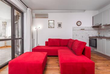 Ferienwohnung bietet Platz für 4 Gäste. Die Betten sind in Schlafzimmern, die es 2 gibt, innerhalb einer Gesamtfläche von 33m2, angeordnet. Die Gäste haben einen eigenen Balkon zur Verfügung, auf der sie in warmen Sommernächten genießen können. Es ist erlaubt, Speisen auf dem Gemeinschafts-Grill vorzubereiten. In der Unterkunftseinheit besteht die Möglichkeit des Mitbringens von Haustieren gegen Aufpreis.