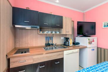 Ferienwohnung bietet Platz für 3 Gäste. Die Betten sind in Schlafzimmern, die es 1 gibt, und in Esszimmer, innerhalb einer Gesamtfläche von 26m2, angeordnet. Die Gäste haben eine eigene Terrasse zur Verfügung, auf der sie in warmen Sommernächten genießen können.