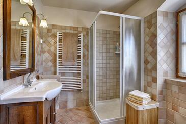 Haus bietet Platz für 8 Gäste. Die Betten sind in Schlafzimmern, die es 3 gibt, und in Wohnzimmer, innerhalb einer Gesamtfläche von 94m2, angeordnet. Die Gäste haben eine eigene Terrasse zur Verfügung, auf der sie in warmen Sommernächten genießen können. Für vollen Genuss und Entspannung gibt es einen privaten Grill für Gäste dieser Unterkunft. Während ihres Aufenthalts können sich Gäste im privaten Schwimmbad entspannen. In der gebuchten Unterkunftseinheit zahlt man am Ort ein Depositum ( der Preis ist an der Internetseite angeführt ).