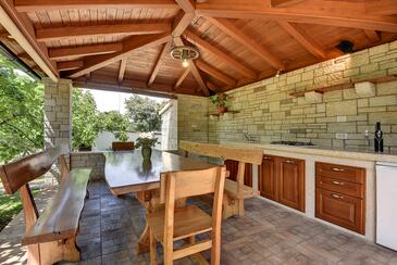 Haus bietet Platz für 8 Gäste. Die Betten sind in Schlafzimmern, die es 3 gibt, und in Wohnzimmer, innerhalb einer Gesamtfläche von 94m2, angeordnet. Die Gäste haben eine eigene Terrasse zur Verfügung, auf der sie in warmen Sommernächten genießen können. Für vollen Genuss und Entspannung gibt es einen privaten Grill für Gäste dieser Unterkunft. Während ihres Aufenthalts können sich Gäste im privaten Schwimmbad entspannen. In der gebuchten Unterkunftseinheit zahlt man am Ort ein Depositum ( der Preis ist an der Internetseite angeführt ).