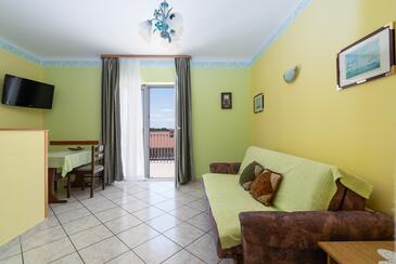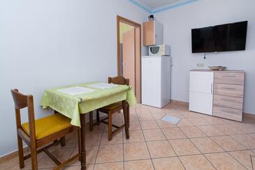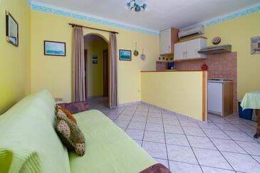 Ferienwohnung bietet Platz für 2 Gäste. Die Betten sind in Schlafzimmern, die es 1 gibt, innerhalb einer Gesamtfläche von 41m2, angeordnet. Die Gäste haben eine eigene Terrasse zur Verfügung, auf der sie in warmen Sommernächten genießen können. Das Apartment bietet Meerblick. Es ist erlaubt, Speisen auf dem Gemeinschafts-Grill vorzubereiten.