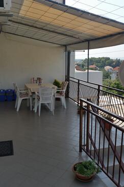 Ferienwohnung bietet Platz für 4 Gäste. Die Betten sind in Schlafzimmern, die es 2 gibt, innerhalb einer Gesamtfläche von 42m2, angeordnet. Die Gäste haben eine eigene Terrasse zur Verfügung, auf der sie in warmen Sommernächten genießen können. Das Apartment bietet Meerblick. Es ist erlaubt, Speisen auf dem Gemeinschafts-Grill vorzubereiten. In der Unterkunftseinheit besteht die Möglichkeit des Mitbringens von Haustieren gegen Aufpreis.