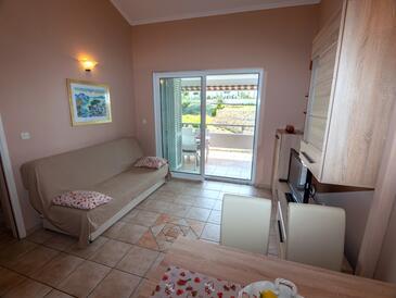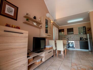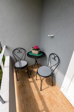 Ferienwohnung bietet Platz für 5 Gäste. Die Betten sind in Schlafzimmern, die es 2 gibt, und in Wohnzimmer, innerhalb einer Gesamtfläche von 54m2, angeordnet. Die Gäste haben einen eigenen Balkon zur Verfügung, auf der sie in warmen Sommernächten genießen können. Es ist erlaubt, Speisen auf dem Gemeinschafts-Grill vorzubereiten.
