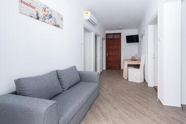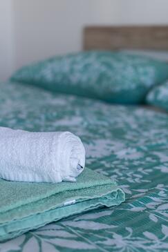 Ferienwohnung bietet Platz für 4 Gäste. Die Betten sind in Schlafzimmern, die es 2 gibt, innerhalb einer Gesamtfläche von 49m2, angeordnet. Die Gäste haben eine eigene Terrasse zur Verfügung, auf der sie in warmen Sommernächten genießen können. Das Apartment bietet Meerblick. Für vollen Genuss und Entspannung gibt es einen privaten Grill für Gäste dieser Unterkunft.