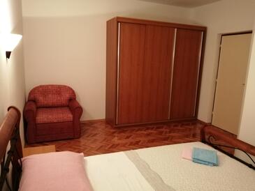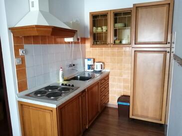 Ferienwohnung bietet Platz für 4 Gäste. Die Betten sind in Schlafzimmern, die es 2 gibt, innerhalb einer Gesamtfläche von 74m2, angeordnet. Die Gäste haben eine eigene Terrasse zur Verfügung, auf der sie in warmen Sommernächten genießen können. Es ist erlaubt, Speisen auf dem Gemeinschafts-Grill vorzubereiten.