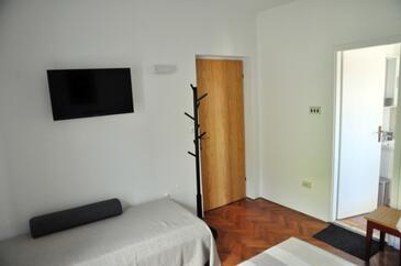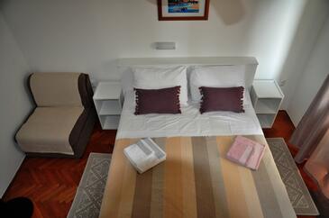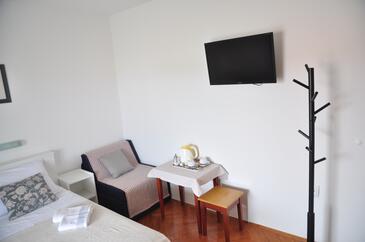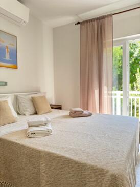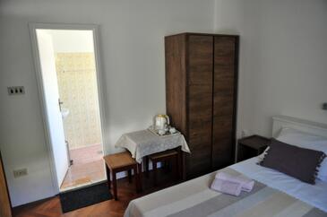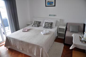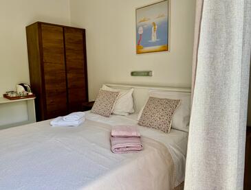 Zimmer bietet Platz für 2 Gäste. Die Betten sind in Schlafzimmern, die es 1 gibt, innerhalb einer Gesamtfläche von 16m2, angeordnet. Die Gäste haben eine eigene Terrasse zur Verfügung, auf der sie in warmen Sommernächten genießen können. Das Zimmer bietet Meerblick. Die reservierte Unterkunftseinheit ist ein Zimmer mit eigenem Badezimmer ohne die Möglichkeit der Nutzung einer Küche.