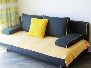 Ferienwohnung bietet Platz für 2 Gäste. Die Betten sind in Schlafzimmern, die es 1 gibt, innerhalb einer Gesamtfläche von 39m2, angeordnet. Die Gäste haben eine eigene Terrasse zur Verfügung, auf der sie in warmen Sommernächten genießen können. Das Apartment bietet Meerblick. Es ist erlaubt, Speisen auf dem Gemeinschafts-Grill vorzubereiten.