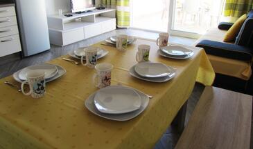 Ferienwohnung bietet Platz für 2 Gäste. Die Betten sind in Schlafzimmern, die es 1 gibt, innerhalb einer Gesamtfläche von 39m2, angeordnet. Die Gäste haben eine eigene Terrasse zur Verfügung, auf der sie in warmen Sommernächten genießen können. Das Apartment bietet Meerblick. Es ist erlaubt, Speisen auf dem Gemeinschafts-Grill vorzubereiten.