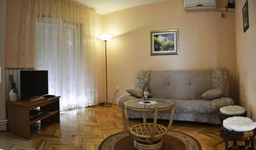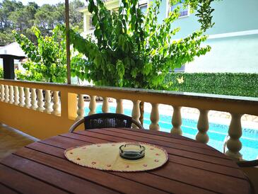Ferienwohnung bietet Platz für 5 Gäste. Die Betten sind in Schlafzimmern, die es 2 gibt, und in Wohnzimmer, innerhalb einer Gesamtfläche von 97m2, angeordnet. Die Gäste haben eine eigene Terrasse zur Verfügung, auf der sie in warmen Sommernächten genießen können. Es ist erlaubt, Speisen auf dem Gemeinschafts-Grill vorzubereiten. Während ihres Aufenthalts können Gäste das gemeinsam zur Nutzung stehende Schwimmbad benutzen. In der Unterkunftseinheit besteht die Möglichkeit des Mitbringens von Haustieren gegen Aufpreis. In der gebuchten Unterkunftseinheit zahlt man am Ort ein Depositum ( der Preis ist an der Internetseite angeführt ).
