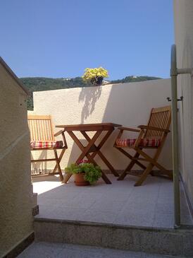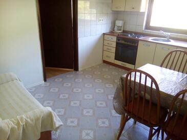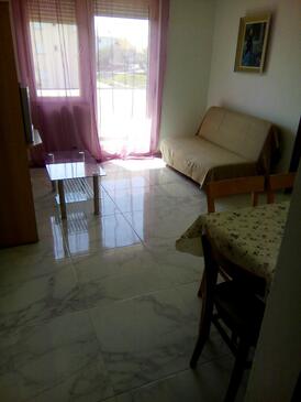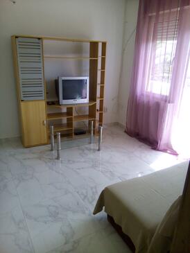 Ferienwohnung bietet Platz für 5 Gäste. Die Betten sind in Schlafzimmern, die es 2 gibt, innerhalb einer Gesamtfläche von 54m2, angeordnet. Die Gäste haben einen eigenen Balkon zur Verfügung, auf der sie in warmen Sommernächten genießen können. Es ist erlaubt, Speisen auf dem Gemeinschafts-Grill vorzubereiten.
