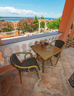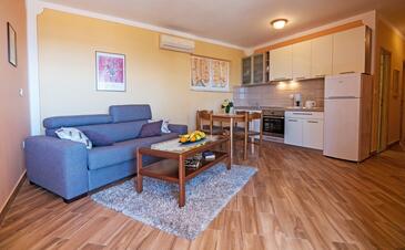 Ferienwohnung bietet Platz für 6 Gäste. Die Betten sind in Schlafzimmern, die es 2 gibt, und in Wohnzimmer, innerhalb einer Gesamtfläche von 67m2, angeordnet. Die Gäste haben eine eigene Terrasse zur Verfügung, auf der sie in warmen Sommernächten genießen können. Das Apartment bietet Meerblick. Es ist erlaubt, Speisen auf dem Gemeinschafts-Grill vorzubereiten. Während ihres Aufenthalts können Gäste das gemeinsam zur Nutzung stehende Schwimmbad benutzen.