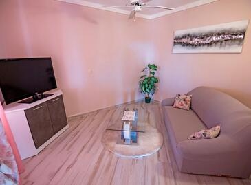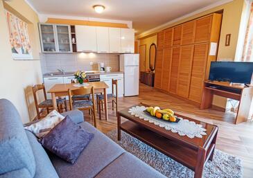 Ferienwohnung bietet Platz für 6 Gäste. Die Betten sind in Schlafzimmern, die es 2 gibt, und in Wohnzimmer, innerhalb einer Gesamtfläche von 67m2, angeordnet. Die Gäste haben eine eigene Terrasse zur Verfügung, auf der sie in warmen Sommernächten genießen können. Das Apartment bietet Meerblick. Es ist erlaubt, Speisen auf dem Gemeinschafts-Grill vorzubereiten. Während ihres Aufenthalts können Gäste das gemeinsam zur Nutzung stehende Schwimmbad benutzen.