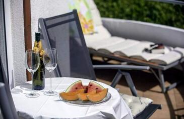 Ferienwohnung bietet Platz für 3 Gäste. Die Betten sind in Schlafzimmern, die es 1 gibt, und in Wohnzimmer, innerhalb einer Gesamtfläche von 40m2, angeordnet. Die Gäste haben eine eigene Terrasse zur Verfügung, auf der sie in warmen Sommernächten genießen können. Das Apartment bietet Meerblick. Es ist erlaubt, Speisen auf dem Gemeinschafts-Grill vorzubereiten. In der Unterkunftseinheit besteht die Möglichkeit des Mitbringens von Haustieren gegen Aufpreis.